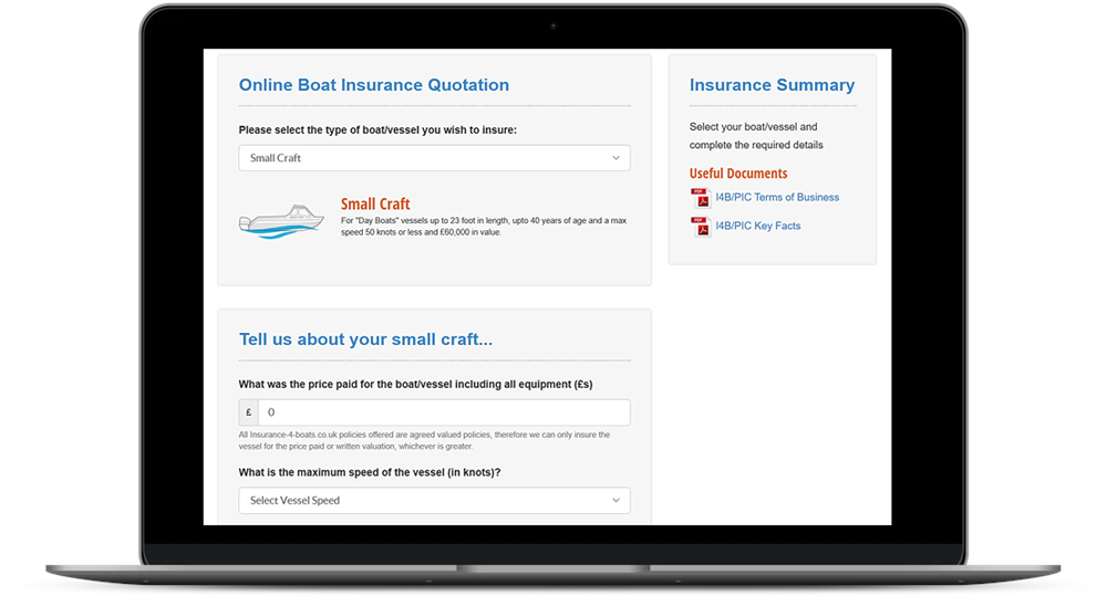 A comprehensive website was built to provide a simple interface for clients to enter their boat details, and display all legally required documents for them to purchase cover online.