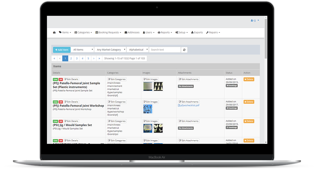 We implemented a web based solution which allowed the sales personnel in the field to login and view all available products and support material for their demonstrations. After booking out what items are needed at the demonstration location, the system allowed the marketing department warehouse to organise packaging, print packing labels and email couriers to deliver the items. Once the demonstration was over, the system emails couriers to arrange collection.